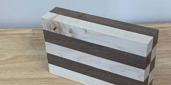 This is a glue-up of maple and walnut used in a combination face grain and end grain serving tray with feet that lift the board up 1 1/2".
